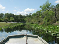 Zwischen der Marina und dem Suwanee River befindet sich ein kurzer Stichkanal, den man gemütlich entlang tuckern kann, und schon hier sieht der Swamp nach Swamp aus. Es ist wunderschön.